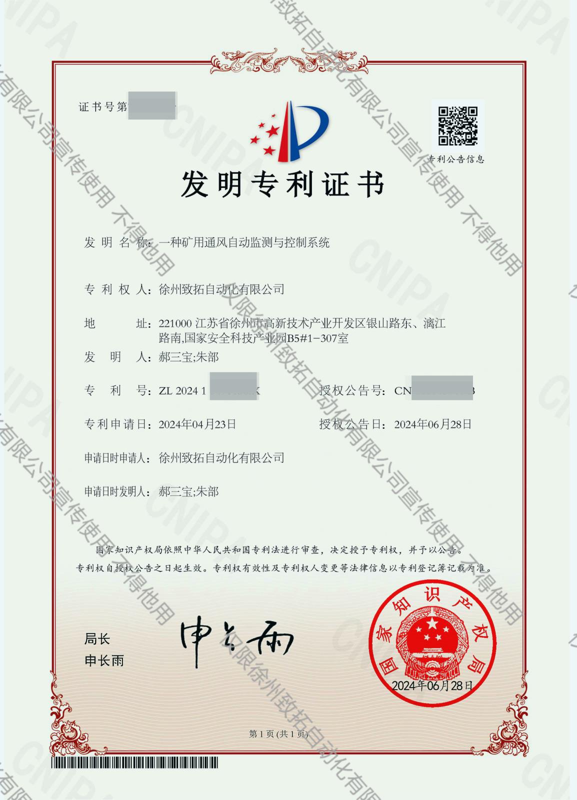 礦用隔爆兼本安型多路不間斷電源控制電路登記證書